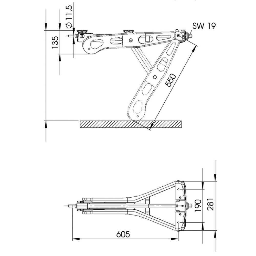 Breite 281mm, Stützhöhe 520mm bei 60°
