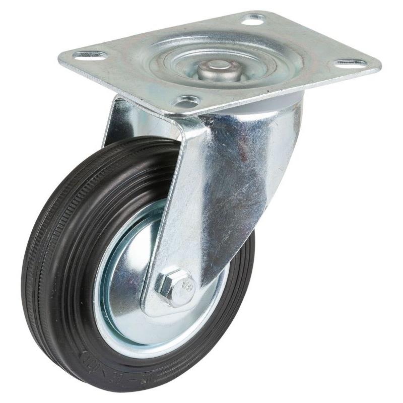 Das Laufrad aus schwarzem Vollgummi mit einer Härte von 85° Shore A bietet angenehmes Abrollen, gute Stoßdämpfung und Laufruhe – selbst auf unebenen Böden.
